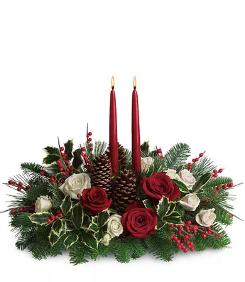 Elegant. Lovely. Radiant. This beautiful Christmas centrepiece is everything you could wish for and more. A sure bet to add an elegant and festive look to your families Christmas Dinner.